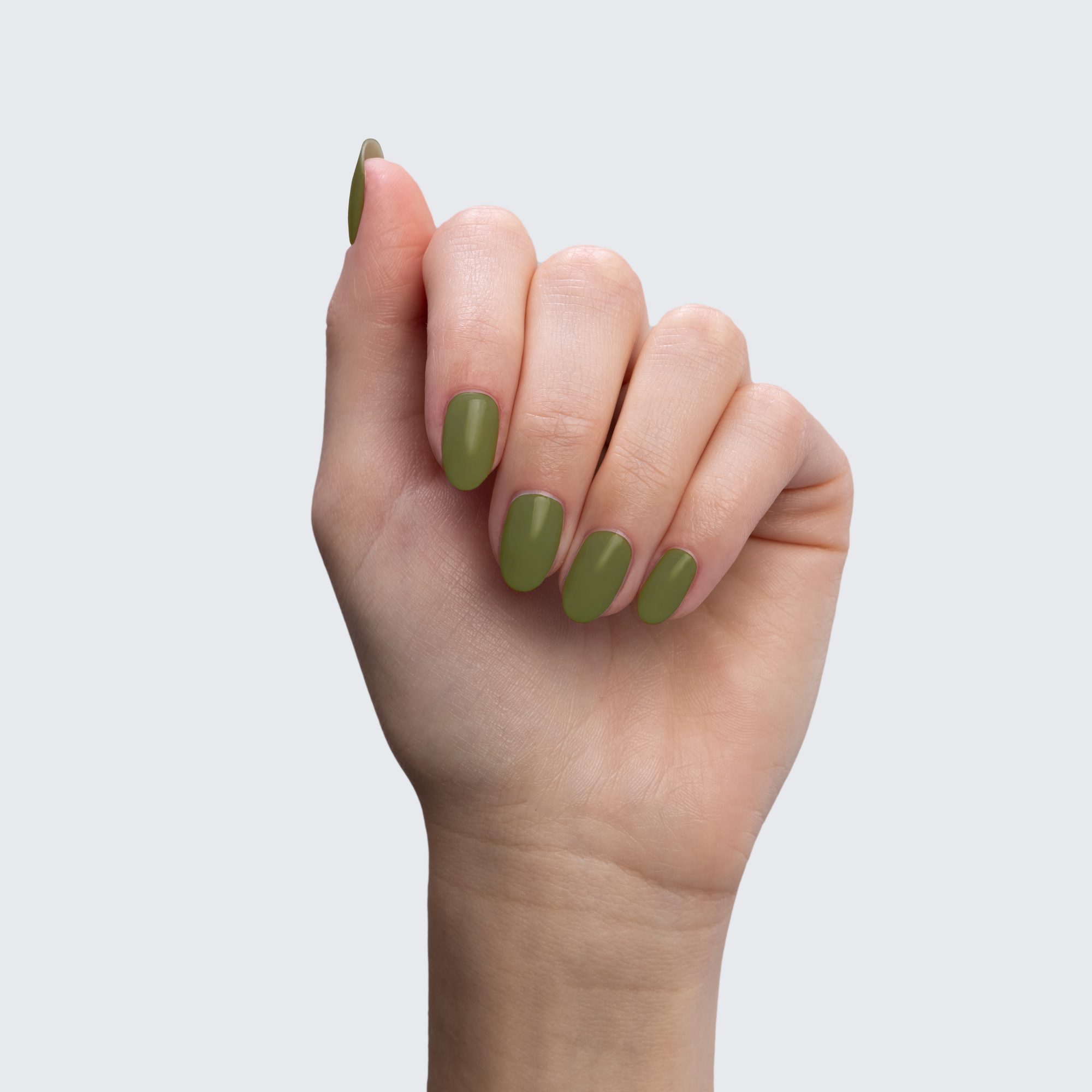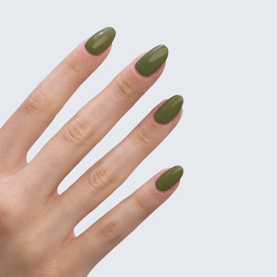 Take a walk in the woods with an olive-green manicure to match.