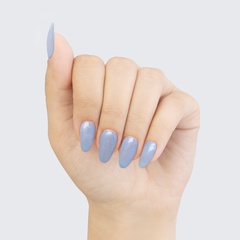 Pale periwinkle blue. Muted*. Frosted. Shimmer. Cool undertone.